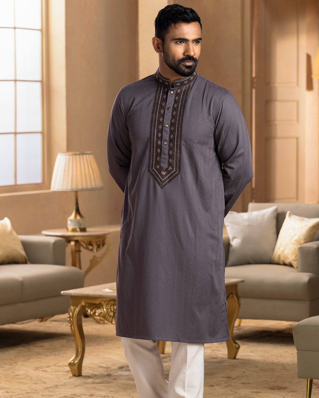 Men’s Premium Panjabi – Embroidered Chest & Karcup Detailing